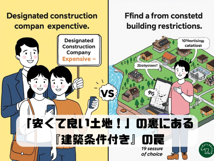 お役立ちコラム, お知らせ 土地探し 「理想の土地!」と思ったら大間違い?『建築条件付き土地』に隠された予算オーバーの罠 2026年4月9日 皆様、こんにちは! 岡山の不動産と住まいの総合窓口「すもっと(Torus不動産合同会社)」です。 4…