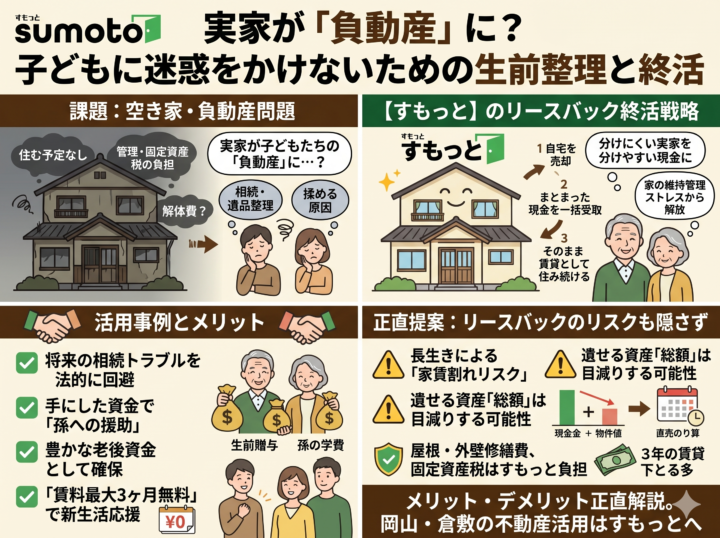 お役立ちコラム, お知らせ リフォーム, 住み替え GWの帰省でハッとしたら要注意!実家の「危険サイン」と、リフォームvs住み替えの賢い選択 2026年4月28日 皆様、こんにちは! 岡山・倉敷の不動産と住まいの総合窓口「すもっと(Torus不動産合同会社)」です…