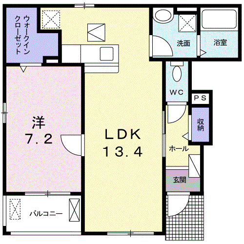間取内容 LDK 13.4畳  洋室 7.2畳