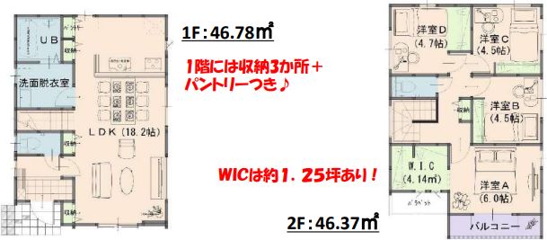 | 間取内容 | LDK 18.2畳 1階 1室 洋室 6.0畳 2階 1室 洋室 4.7畳 2階 1室 洋室 4.5畳 2階 2室 | ||