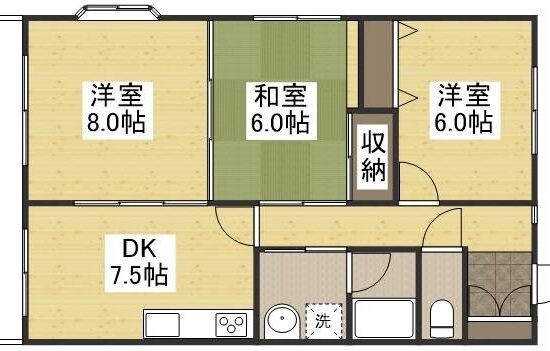 | 間取内容 | DK 7.5畳 洋室 8.0畳 洋室 6.0畳 和室 6.0畳 | ||
