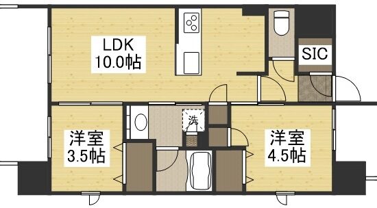 | 間取内容 | LDK 10.0畳 洋室 4.5畳 洋室 3.5畳 | ||