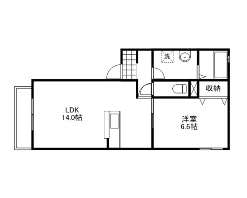 | 間取内容 | LDK 14.0畳 洋室 6.6畳 | ||