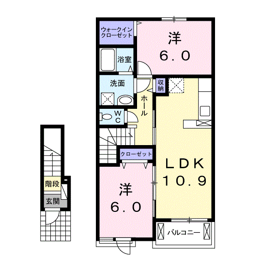 間取内容 LDK 10.9畳 1室 洋室 6.0畳 2室