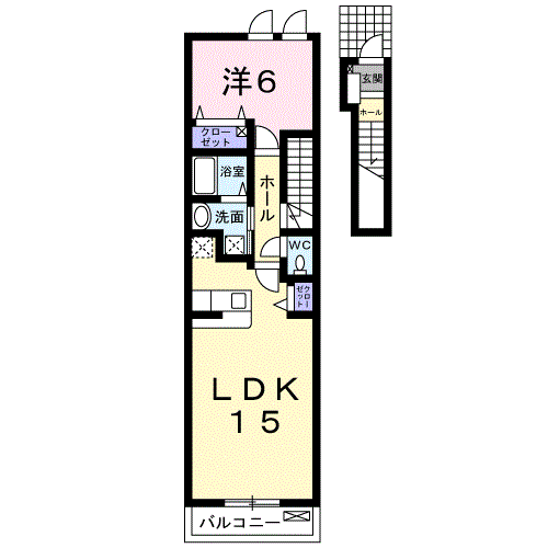 | 間取内容 | LDK 15畳 洋室 6畳 | ||
