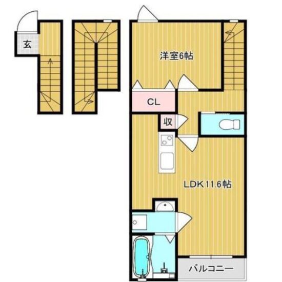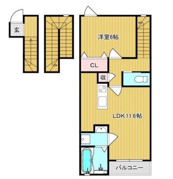 | 間取内容 | LDK 11.6畳 洋室 6畳 | ||
