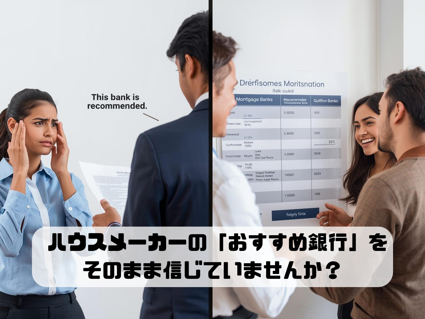 しかし、不動産とお金のプロフェッショナルとして、私たちは強く警告します。 その「おすすめ銀行」、あなたにとって一番お得なローンではない可能性が非常に高いです!